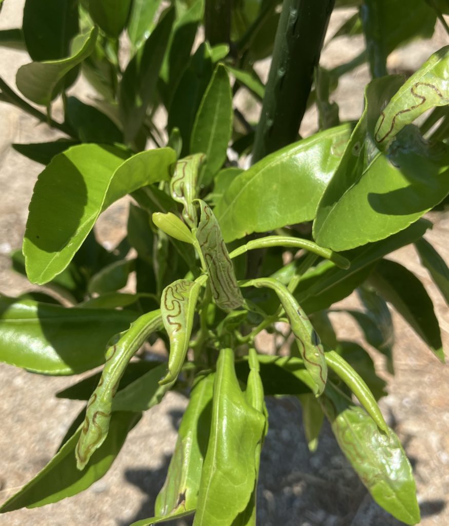 エカキムシの幼虫は植物の葉の内部に潜り込み、組織を食害し葉を枯らしてしまいます。