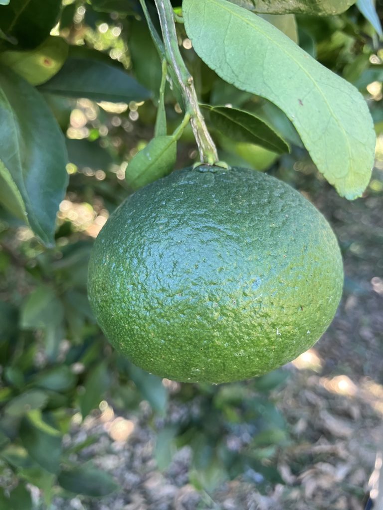 現時点で、今年は甘平がたくさんついています。 これらが最終的にどれだけ残るかが問題です。実が大きくなるこれからの時期、実の肥大に外皮がついていけず、パックマンの…