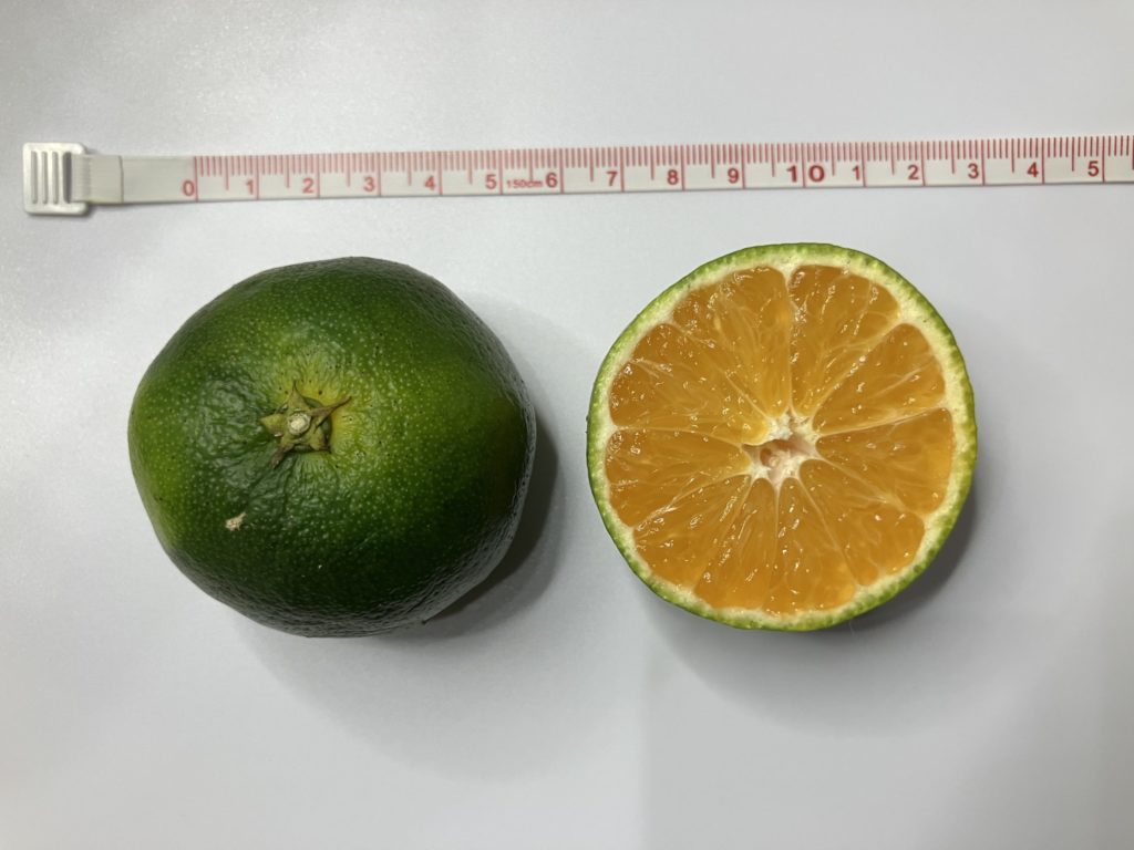 試食したみかんのサイズは6cm、重さは90g程度