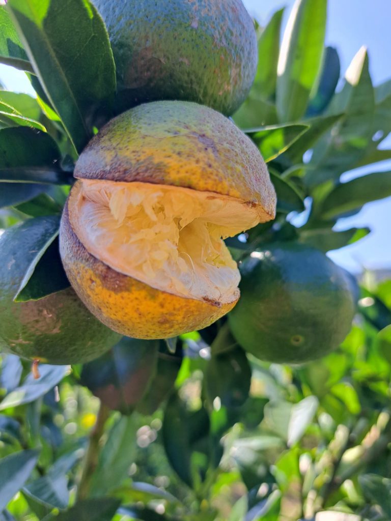 甘平は特に外皮が薄いため、裂果が起きやすく、
